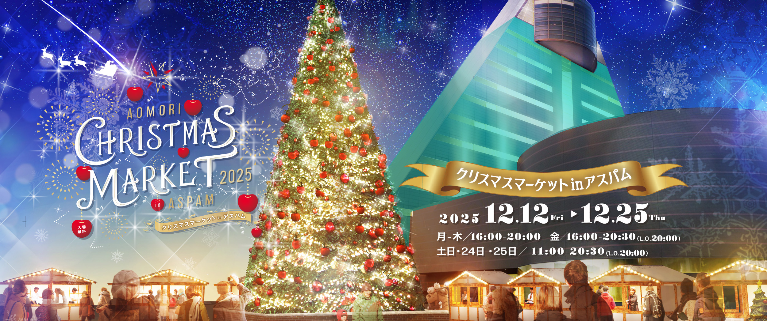 今週末、金曜日より「青森県観光物産館アスパム」において恒例の「クリスマスマーケット2025」が開催されます。